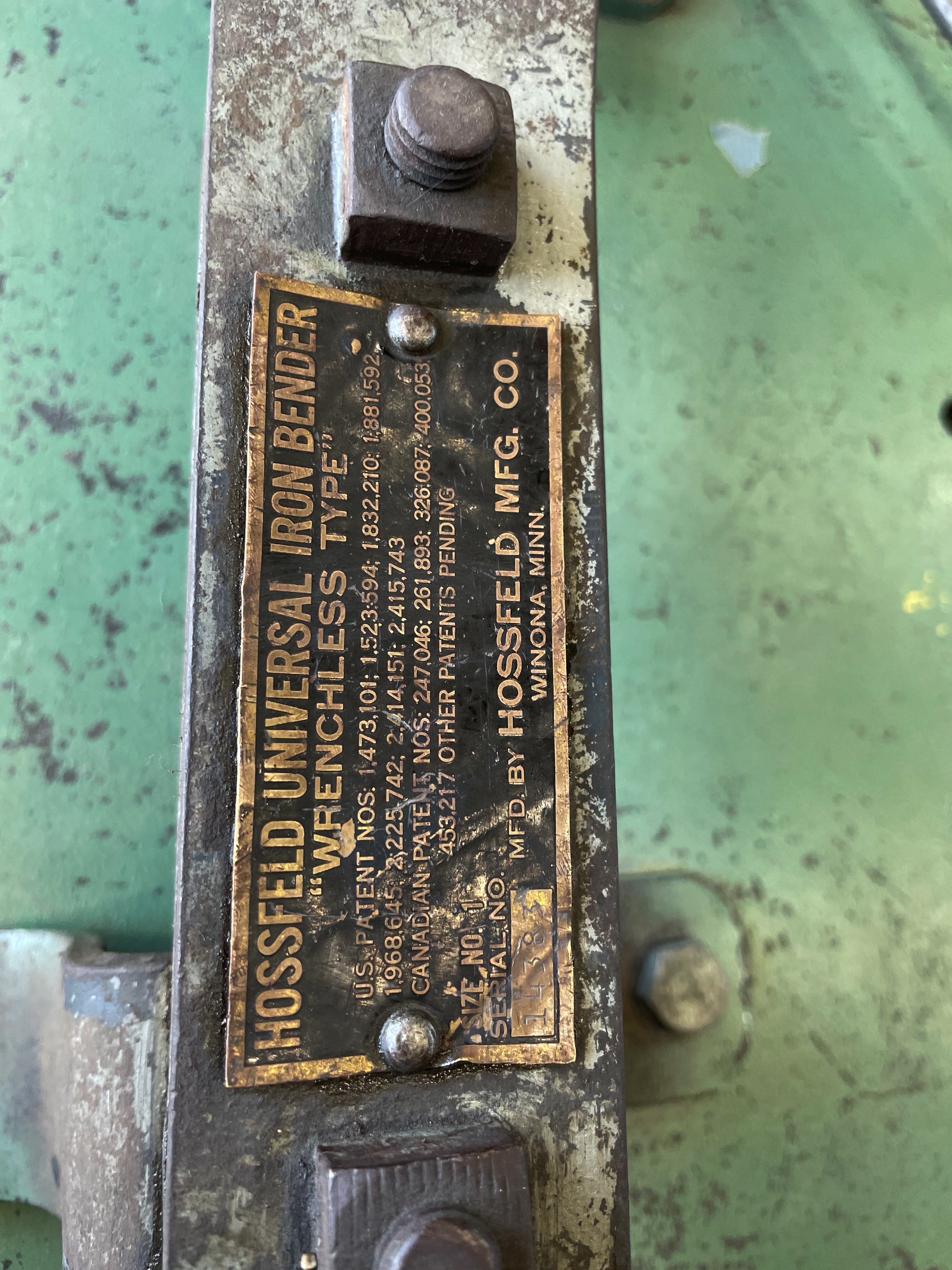 Hossfeld universal iron bender wrenchless
