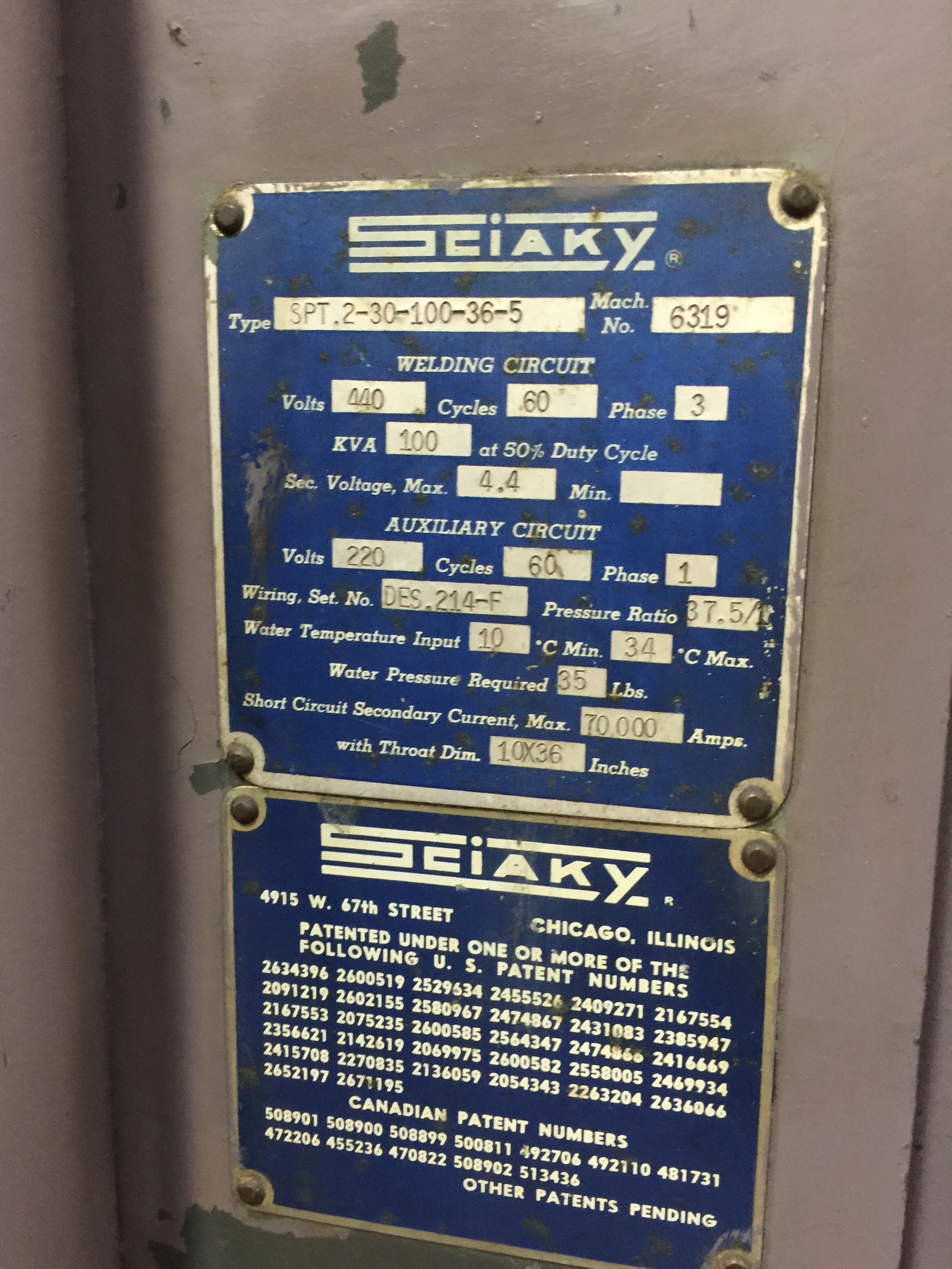 100 KVA Sciaky Model SPT 2-30-100-36-5 100 KVA Spot Welder